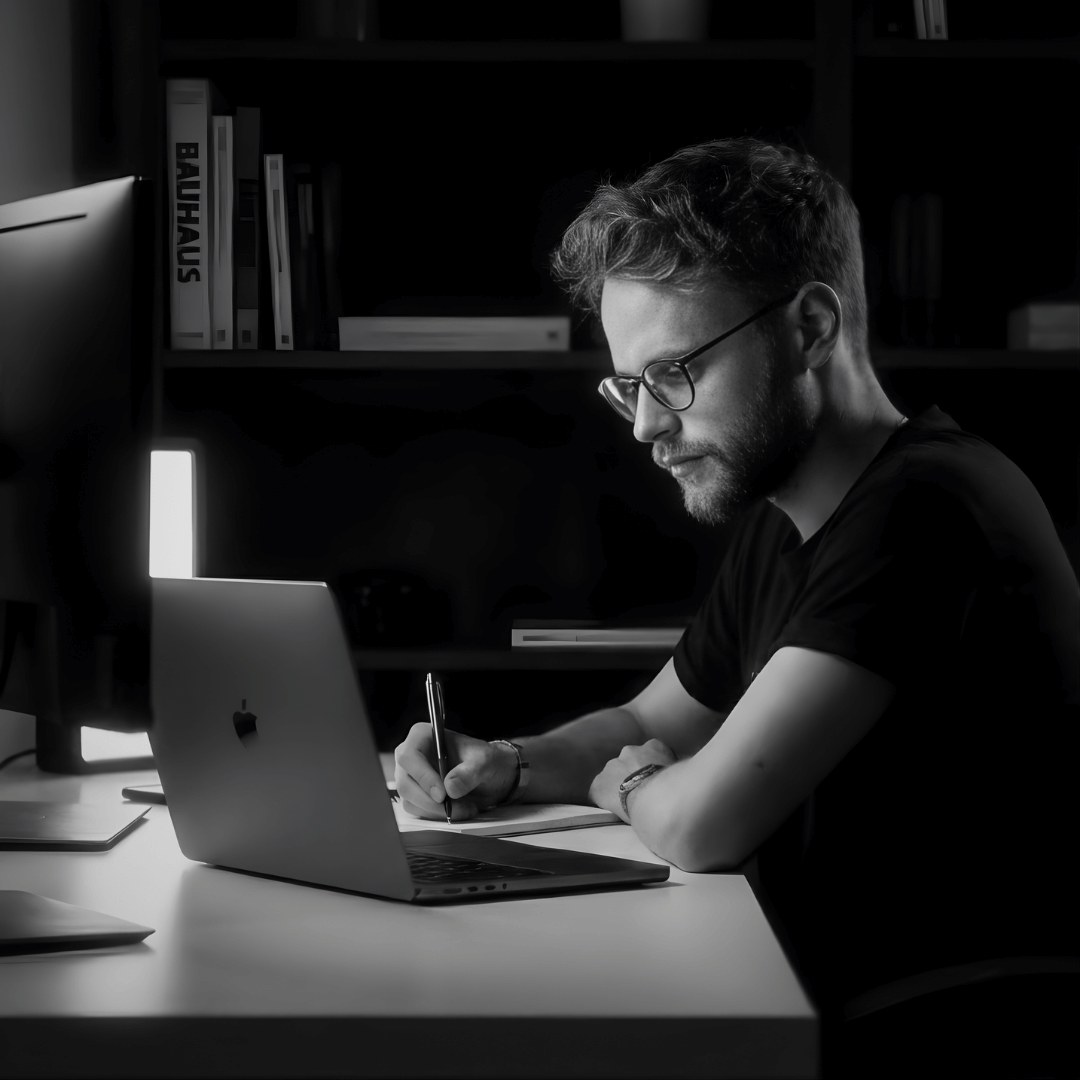 Um estúdio enxuto, focado em execução e em manter proximidade direta com quem decide. Menos reuniões desnecessárias, mais entregas concretas.